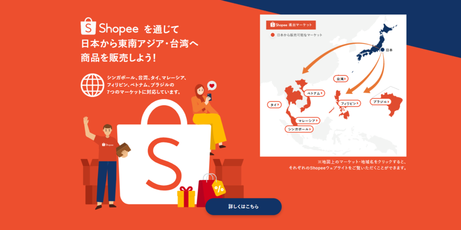 Shopeeは、2015年にシンガポールで設立されたECプラットフォームです。現在では、日本からの出店ではシンガポール、タイ、マレーシア、ベトナム、フィリピン、台湾、ブラジルの7地域に対応しています。
