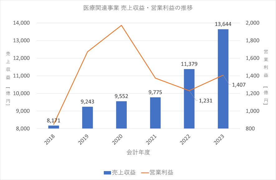 医療関連事業の売上収益と営業利益の推移は以下のとおりです。