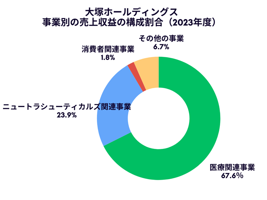 大塚ホールディングスの経営状況を事業別の売上収益から深掘りします。まず、事業別の売上収益の構成割合は以下のとおりです。