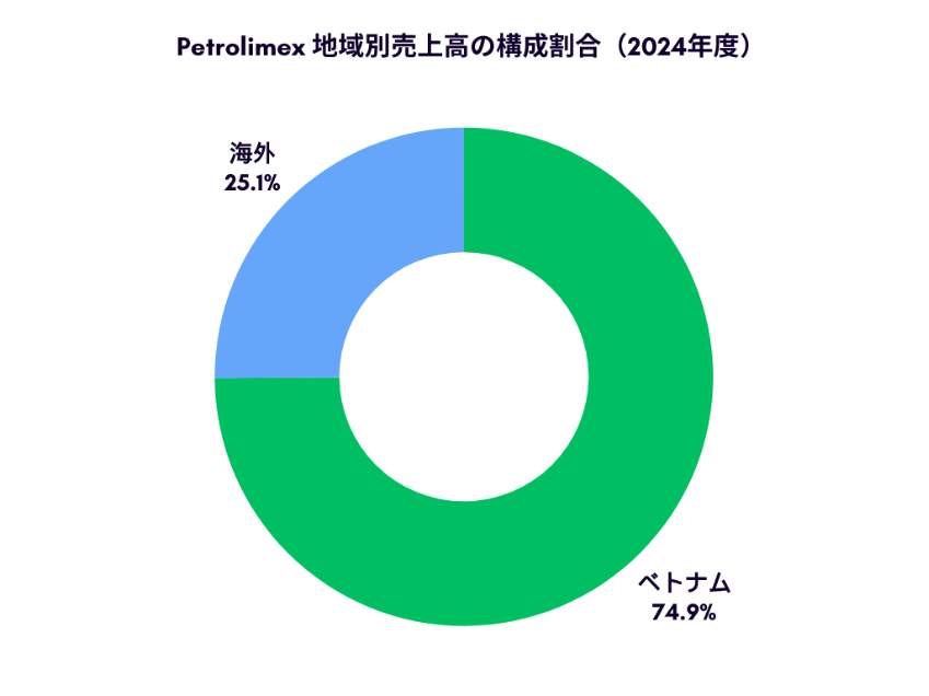Petrolimexの売上高のうち、25.1%は海外事業が占めています。海外事業の中核を担うのは、シンガポールとラオスの子会社です。特に、シンガポールの子会社が拠点として重要な役割を果たしています。具体的には、バングラデシュ、スリランカ、ネパール、ミャンマー、インドネシア、フィリピン、カンボジアなどに製品を展開しています。