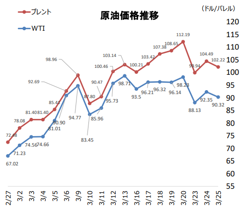原油はナフサをはじめ、樹脂やプラスチック、ゴムなど、多くの素材の原料に使用されています。その価格上昇は原材料の価格を押し上げる要因となります。さらに深刻なのは、供給面のリスクです。原油の供給が滞ることで原材料が製造できず、調達が困難になる恐れがあります。原材料の確保が難しくなれば、生産の停滞やサプライチェーンの混乱につながりかねません。このように、原油価格の高騰と供給不安は、素材・製造業において重大なリスクとなっています。