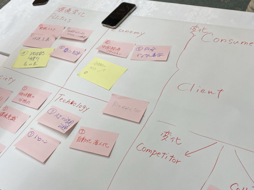 1日目に話し合った内容を深めながら、2030年に向けたグループの価値づくりや、そのための戦略について、真剣に意見を交わしました。