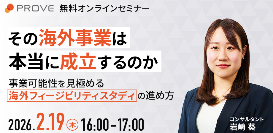 本セミナーでは、現在の社会情勢や事業環境を踏まえ、海外事業を検討する際に押さえるべきフィージビリティスタディの全体像と実務上のポイントについて、具体例を交えつつご紹介します。